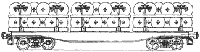![]() | 6-осная платформа для трансфоматора, модель 13-435 | Грузоподъемность -- 93 т Масса тары вагона -- 29 т |